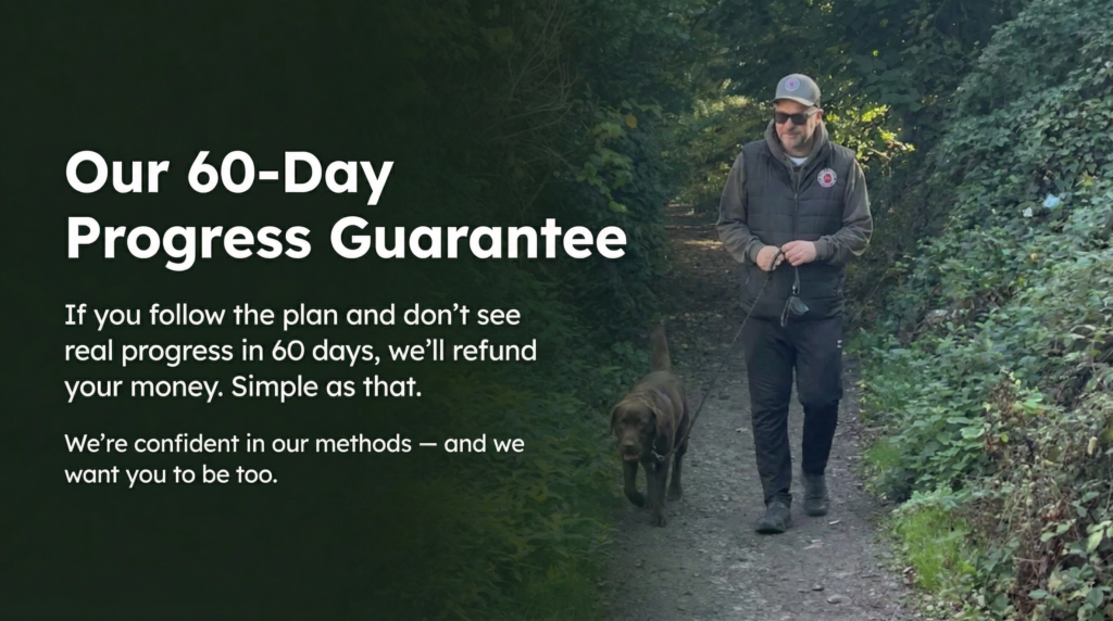 We are confident in our methods and the results they bring. If you commit to the training plan and don’t see significant progress in your dog’s behaviour within 60 days, we’ll give you your money back. It’s that simple